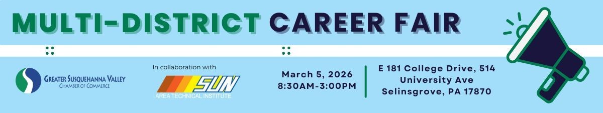 Then join us for the Multi-District Career Fair on Thursday, March 5, 2026, from 8:30 AM to 3:00 PM at Susquehanna University’s Garrett Sports Complex! In partnership with SUN Area Technical Institute, this event brings together dozens of local businesses and hundreds of students from several local school districts for in-person networking and career exploration. Don't miss this chance to connect your business with region's upcoming talent pool!